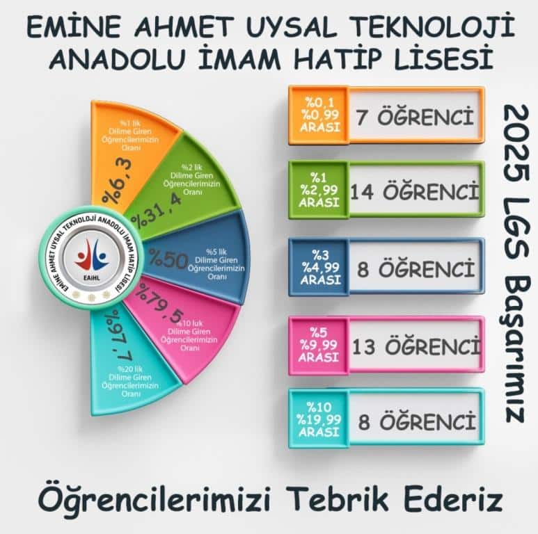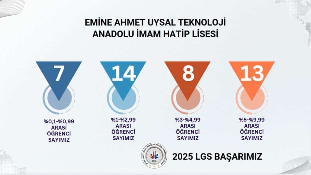2025 Yılında gerçekleştirilen LGS sınavında öğrencilerimizin sonuçlarına göre elde ettiğimiz okul başarımız